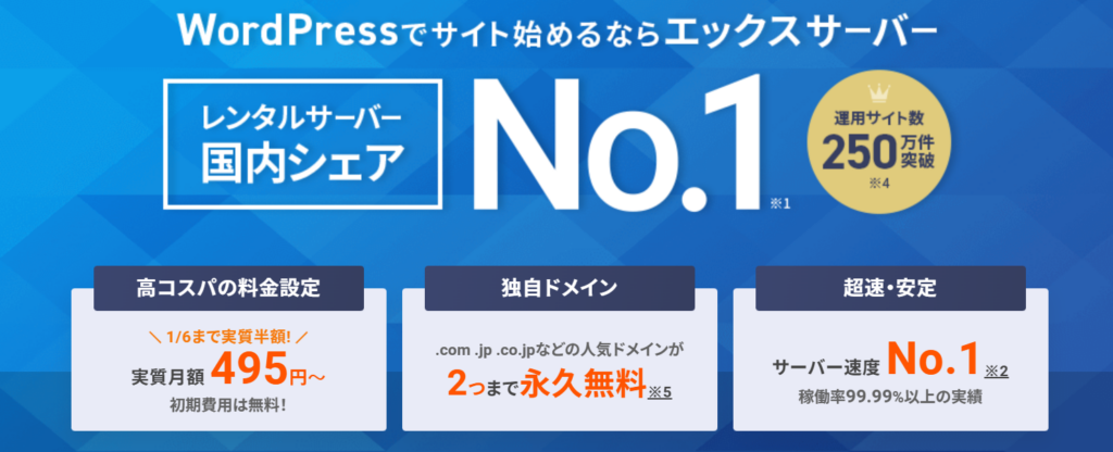 | 2位 | エックスサーバー | 990円~ | 高速処理・国内最大級 | メール・チャット | コスパ抜群 |