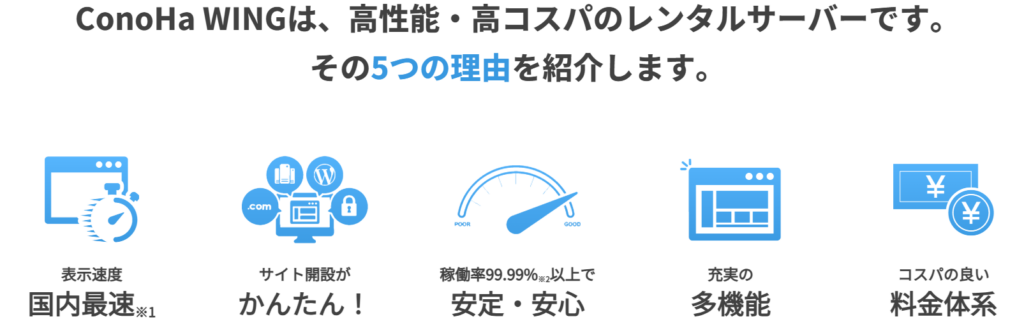 | 4位 | ConoHa WING | 941円~ | 高速SSD・WP特化 | チャット対応 | 個人・副業向け |