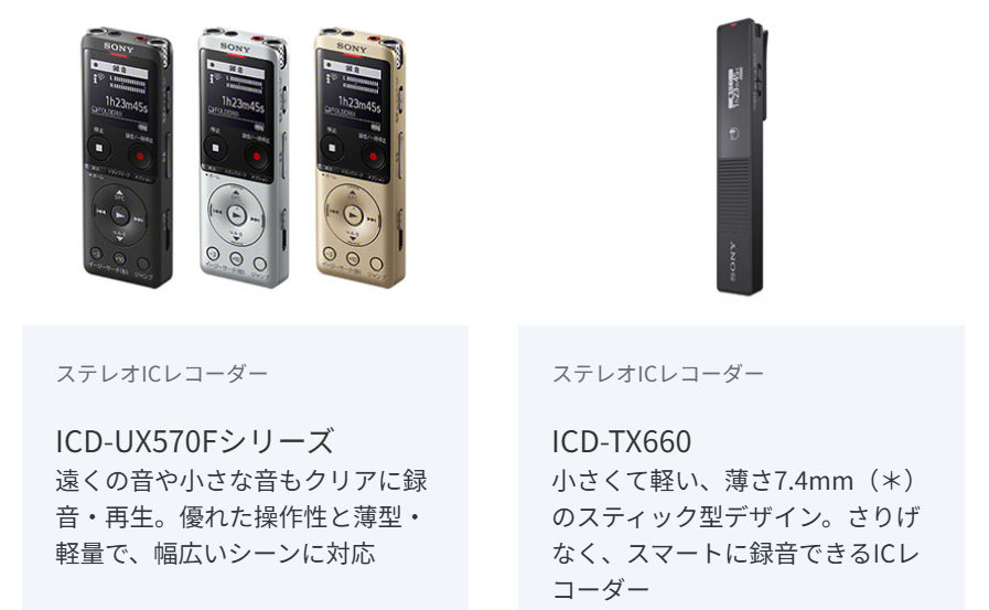 薄型軽量で携帯性に優れた、Sonyの定番ボイスレコーダー。