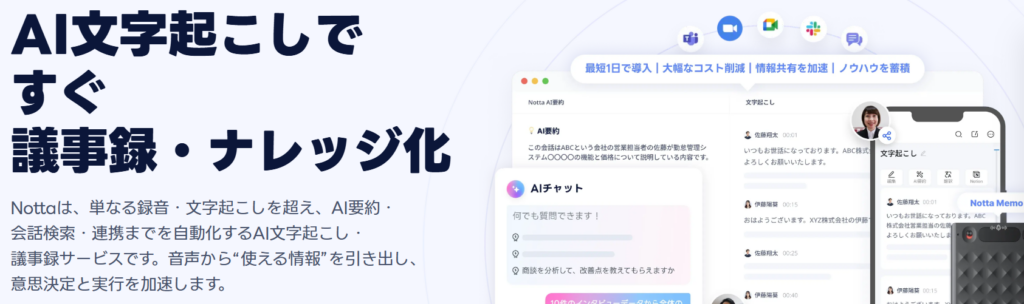 特に、議事録作成・取材の書き起こし・授業ノート化など、「時間が足りない」人の味方。