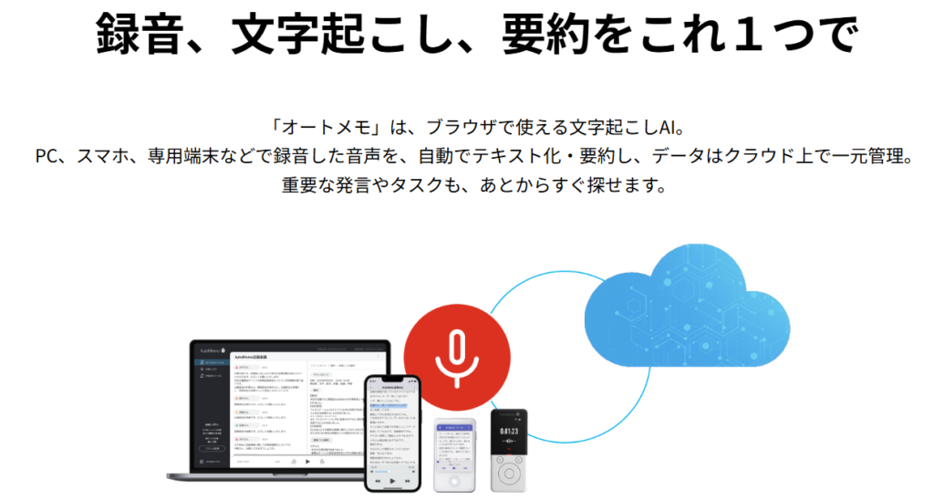 録音データはクラウドに安全に保存され、スマホやPCからいつでも確認可能。